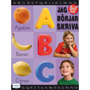 Jag börjar skriva är en aktivitetsbok som på ett lekfullt och lustfyllt sätt låter barnen lära sig vad bokstäverna heter och hur de låter. Barnen får: