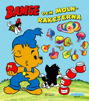 Vad är det för ulliga färgmoln på himlen? Bamse och Lille Skutt går hem till Skalman för att se om han vet. En tygbok med Bamse som har prassel i sidorna och påsydda detaljer på varje uppslag.