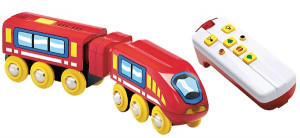 Full koll med fjärrkontroll! Snabba tåg behöver någon som tar kontroll! Det här expresståget kör framåt och bakåt, tutar, blinkar med lamporna och bromsar så hårt att det låter – men bara om någon håller i fjärrkontrollen. De tydliga knapparna får vilken liten tågentusiast som helst att känna sig som en fullfjädrad trafikledare! Klarar av att dra upp till 4-5 vagnar.