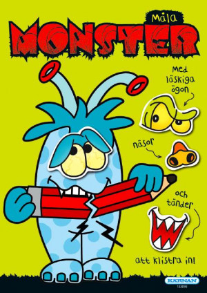Huuu! Vågar du öppna den här läskiga boken? Där finns en massa kusliga monster inuti den! Fast lite roliga ser monstren faktiskt också ut. Några har tappat sina ögon. Undrar du var de är? Jo, någonstans på klisteraket i boken. Liksom näsor och munnar. Klistra in ögon, nästor och munnar på monstren som är utan, så blir de kanske både läskigare, ruskigare – och roligare! Måla dem sen och vips har du färggladare och kanske lite farligare monster.
