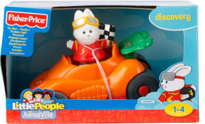 Den här racerföraren har aldrig förlorat ett race. Tryck ner honom i förarsätet för att höra häftiga racerljud och ett ”boing” när han tar ledningen!