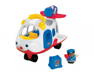 Planet har ett handtag som underlättar när leksaken ska tas med. Flytta flygplanet fram och tillbaka så hörs klickande ljud, snurra på motorn så skramlar det! Trycker du ned flygkaptenen så hörs ljud och musik.