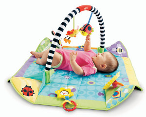 Utveckling och glädje för de små! Anpassa som du vill till just ditt barn! Gym med 3 flyttbara leksaker och 2 stimulerande leksaker fästa på bågen. Den mjuka mattan kan tvättas i maskin (ta bort båge och elektronik). Fäst leksakerna för att uppmuntra till lek! Lätt att vika ihop och ta med. 3 knappcellspatterier ingår.