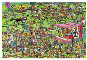 Ett skoj pussel att lägga för hela familjen! Många härliga figurer och bilder smyger fram när du lägger bitarna på plats. Du kan också leta efter den lilla hajfenan som finns med i varje pussel från Jan van Haasteren. Tävla om vem som finner fenan först!
