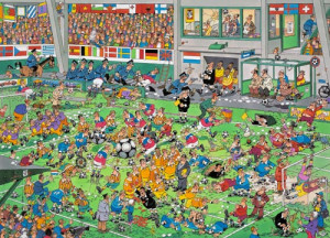 Ett skoj pussel att lägga för hela familjen! Många härliga figurer och bilder smyger fram när du lägger bitarna på plats. Du kan också leta efter den lilla hajfenan som finns med i varje pussel från Jan van Haasteren. Tävla om vem som finner fenan först!