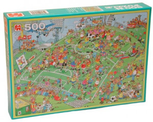 Ett skoj pussel att lägga för hela familjen! Många härliga figurer och bilder smyger fram när du lägger bitarna på plats. Du kan också leta efter den lilla hajfenan som finns med i varje pussel från Jan van Haasteren. Tävla om vem som finner fenan först?