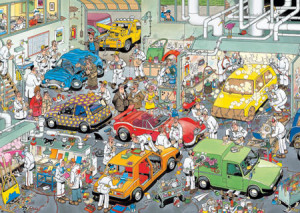 Ett skoj pussel att lägga för hela familjen! Många härliga figurer och bilder smyger fram när du lägger bitarna på plats. Du kan också leta efter den lilla hajfenan som finns med i varje pussel från Jan van Haasteren. Tävla om vem som finner fenan först?