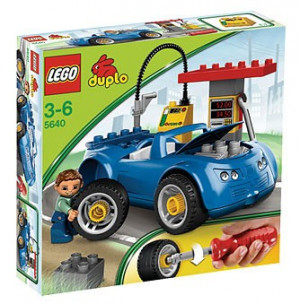 Slut på bensin? Besök bensinstationen för att fylla upp bilen! Och det är inte allt du kan göra. Använd barnsäker skruvmejsel för att ta bort hjulen eller använda nyckel för att ta ut motorn för en renovering! DUPLO bitar är tåliga och roliga för yngre byggare.