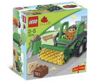 En färgglad sopmaskin som kan sopa rent på Lego Villes gator! Borsten roterar när maskinen rullar framåt. 1 figur och flera saker att sopa upp med maskinen.
