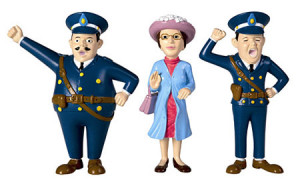 Här kommer de tokiga och klumpiga poliserna Kling och Klang som brukar snubbla omkring runt Villa Villekulla. Här är också märkliga Fru Prussiluskan som inte förstår att Pippi faktiskt kan klara sig själv. Innehåller 3 st PVC-fria figurer.