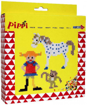 Nu kan du lägga och skapa fina motiv av Pippi, Lilla Gubben och Herr Nilsson.Innehåller 2000 st plastpärlor, 2 st stora stiftplattor och mönsterkort i färg.