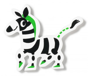 Zebra i trä ur Mickis vilda vänner-sortiment, med självhäftande baksida för enkel montering på plana ytor. Flera olika spännande illustrationer finns.