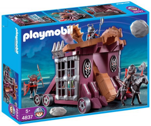 Katapult på hjul som innehåller fängelseburar för skurkarna. Katapulten fungerar. Tillbehör till katapulten, en häst och fyra figurer ingår i paketet