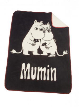Mjuk och skön babyfilt med enfägad grund och Mumin-motiv. Passar både i sängen, i vaggan, i vagnen och i soffan.