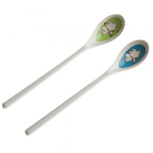 Tåliga skedar i repsäker melaminplast med motiv av Spöket Laban.