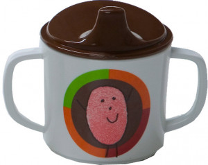 Spillsäker mugg med handtag. Finns i olika färger, det här är färgen brun.