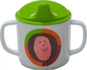 Spillsäker mugg med handtag. Finns i olika färger, det här är färgen grön.